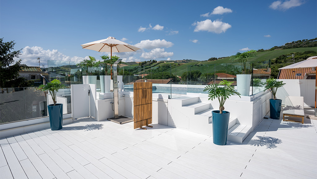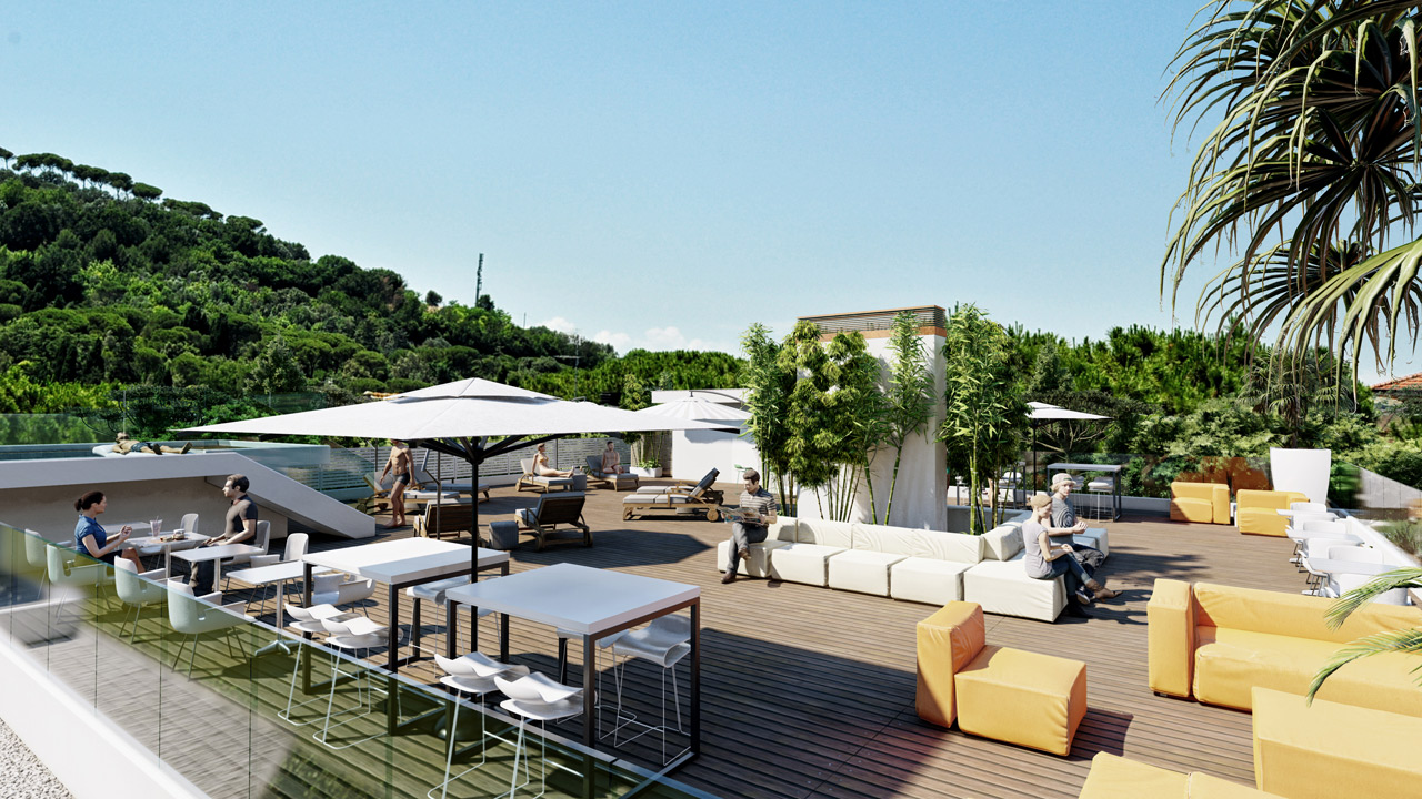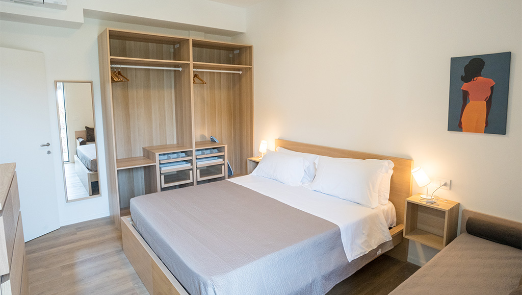 Für einen komfortablen Aufenthalt können Sie eine der 6 geräumigen ZWEI-SCHLAFZIMMER-WOHNUNGEN wählen 6 die in einem einfachen und eleganten Stil eingerichtet sind, .. Alle Wohnungen, sind vollständig , schallisoliert und verfügen über zwei Badezimmer, eine möblierte Terrasse, Klimaanlage, und eine Kochnische. Sie sind etwa 80 Quadratmeter groß und einige von ihnen bieten einen herrlichen Blick auf das Meer und den Pinienwald.